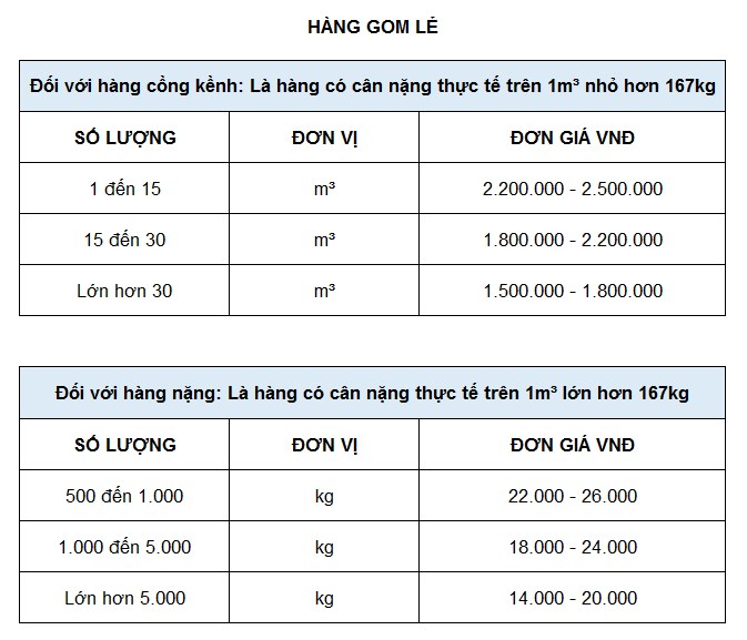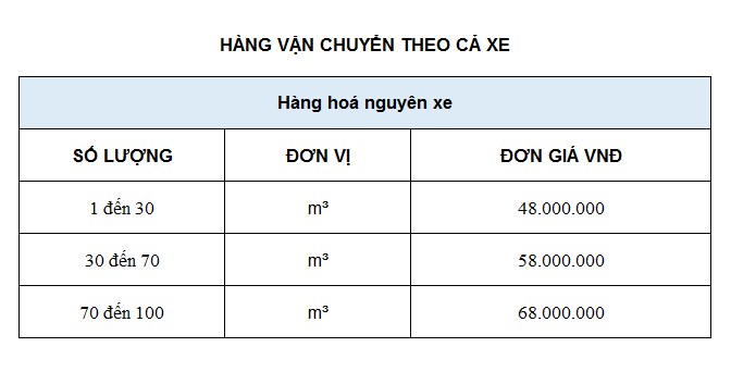 Bảng giá dịch vụ vận chuyển hàng chính ngạch về Sài Gòn